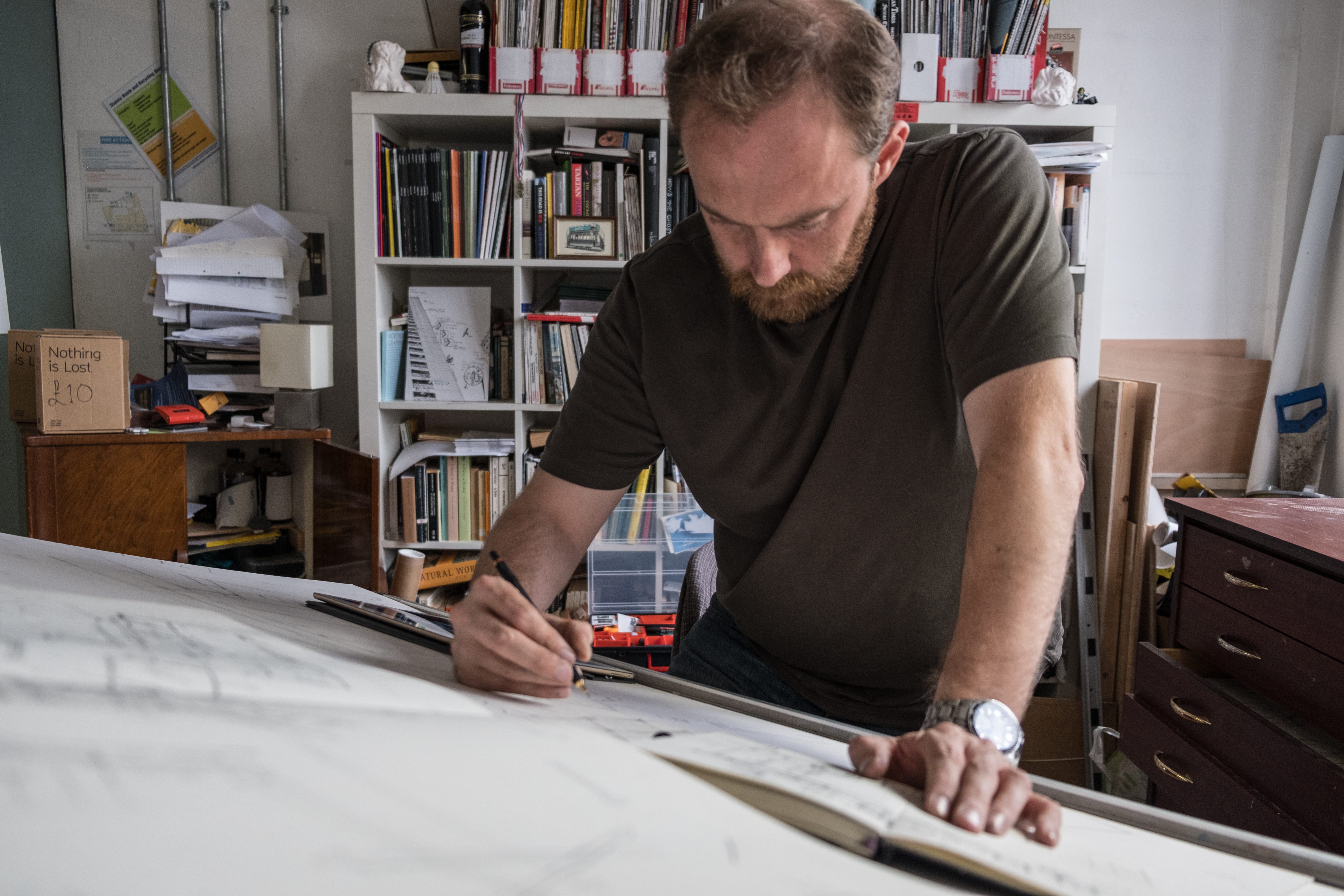 Which means…? Well, let’s start with the material, going from the large to the small scale– a Ballroom, a Town Hall, a Steeple, then its constitutional fixtures and features, slabs of concrete scatters of gravel, carpets that suck at your sole, water coursing through a canal and then finally to the last level, of objects - clinking mugs of tea or sloshing pints of Tennents. This is the material I- or rather we – are concerned with finding some sort of way to talk about. And that brings in other material from outside to assemble around– the big white mount board I would draw upon and the oral accounts of the participants who agreed to take part. We discuss their lives, what the place meant to them, but also what we could illustrate about their place, and how. This means asking them to imagine it as if from above, and then anchor that in their grounded experience. It asks them to think a bit like me, just as I was learning to think a bit like them. It asks them to be pigeons.